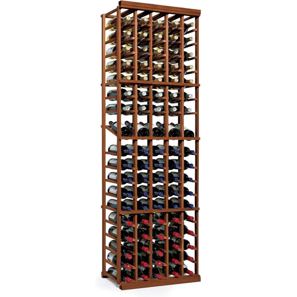 N'FINITY. Wine Racks Made Simple. In our effort to create the racking kits you always wanted Wine Enthusiast has developed N'FINITY Wine Racks'a collection many designers say looks even better than custom racking though it is offered at a fraction of the price. This 5-Column Wine Rack Kit holds up to 90 wine bottles from standard Bordeaux size to Pinot Noir and Champagne size. Three 25-bottle tiers. One 15-bottle tier with an angled row for displaying 5 bottles. Size: 74'H x 23-1/4'W x 13-1/4'D (Base & crown molding add 1/2' additional to the depth for a total of 13-3/4'.) Solid Mahogany. Solid Value. N'FINITY wine racks offer both the beauty and richness of furniture-grade decor pieces and the lasting durability of a quality wine storage system. Solid Mahogany makes it possible. Choose from a hand-applied Natural Finish or Dark Walnut Stain. Clear coated. Finished look. Simpler assembly. Hidden pre-drilled fasteners make assembly easier leaving no unsightly screws or holes in the most visible areas. No nail gun or putty needed. Base and crown moldings (included) provide a more finished 'custom' look. Assembly instructions and hardware included. Rubber mallet Phillips screwdriver and nail gun (not included) required for assembly. Nail gun needed only to apply optional face trim. FREE Consultation Assembly time varies depending on the racking kit you purchase and how handy you are putting items together. Need help'Call our Wine Storage Consultants at 800.377.3330 for a FREE consultation. FREE Computer Design Want to create a wine cellar with N'FINITY Wine Racks'Send us a preliminary wine cellar sketch via email or fax. Then call us. We'll design your wine cellar'a $99 value'for FREE! Email:[email protected] Fax: 866.873.2510 Call: 800.377.3330 Wine Racks N'FINITY PRO 618 51 05. Great gift for wine lovers.