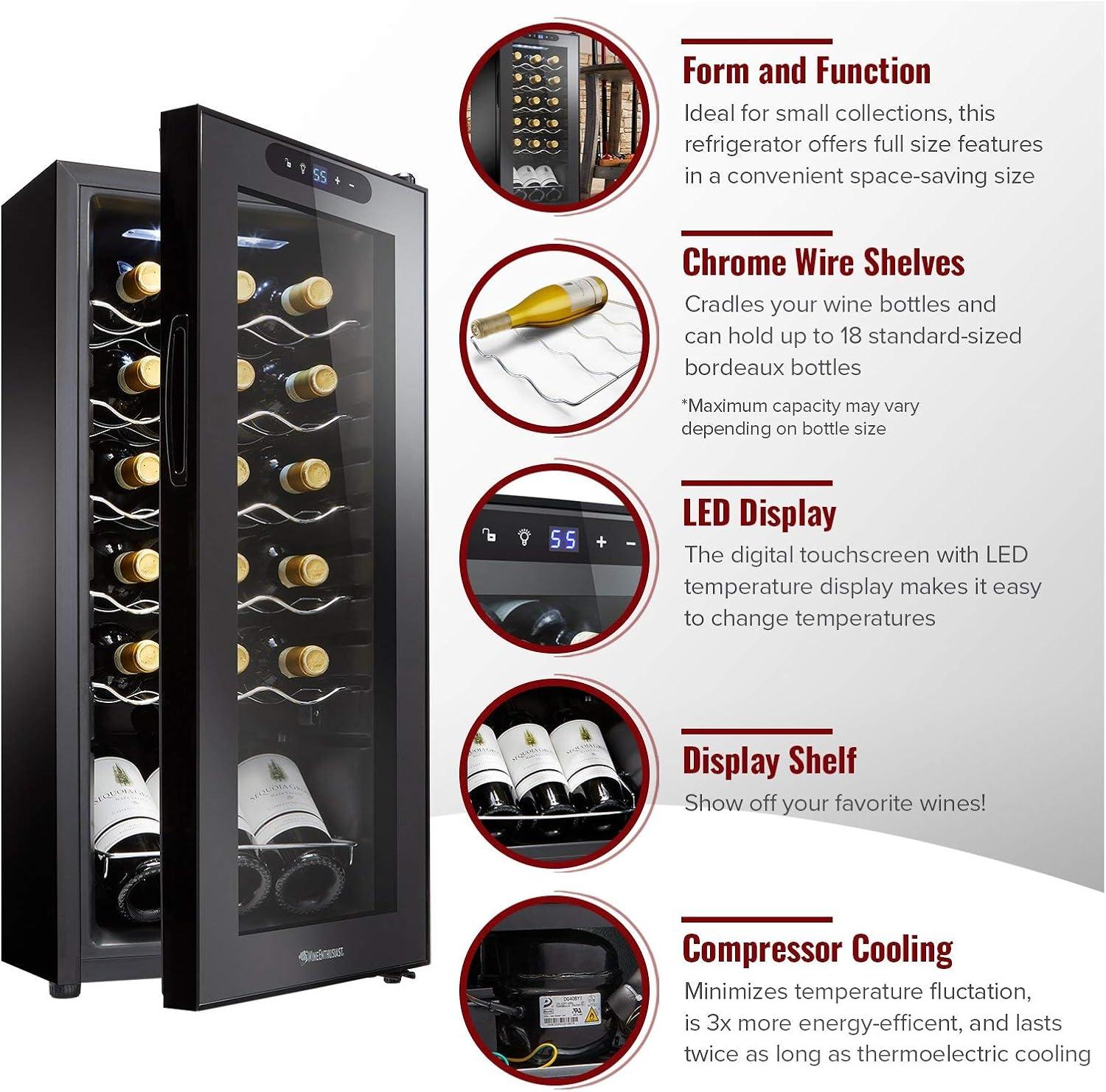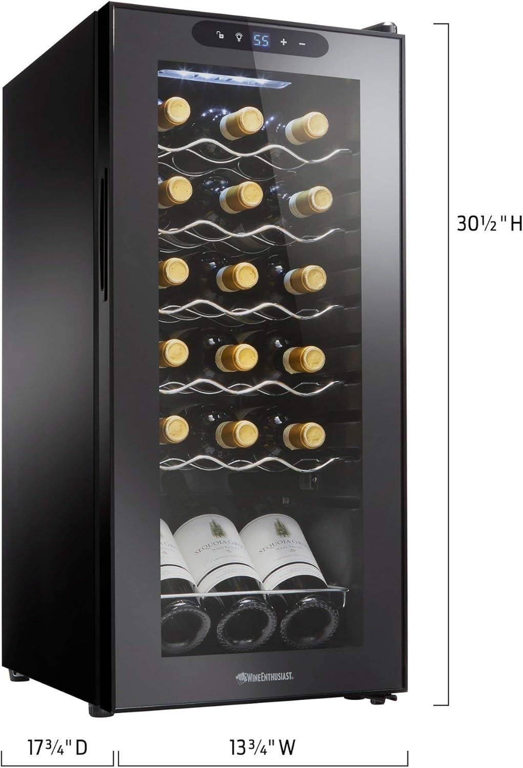 Wine Enthusiast 24-Bottle Compressor Wine Cooler with Upright Bottle Storage – Freestanding Wine Refrigerator with Digital Touchscreen and LED Temperature Display(18-Bottle)