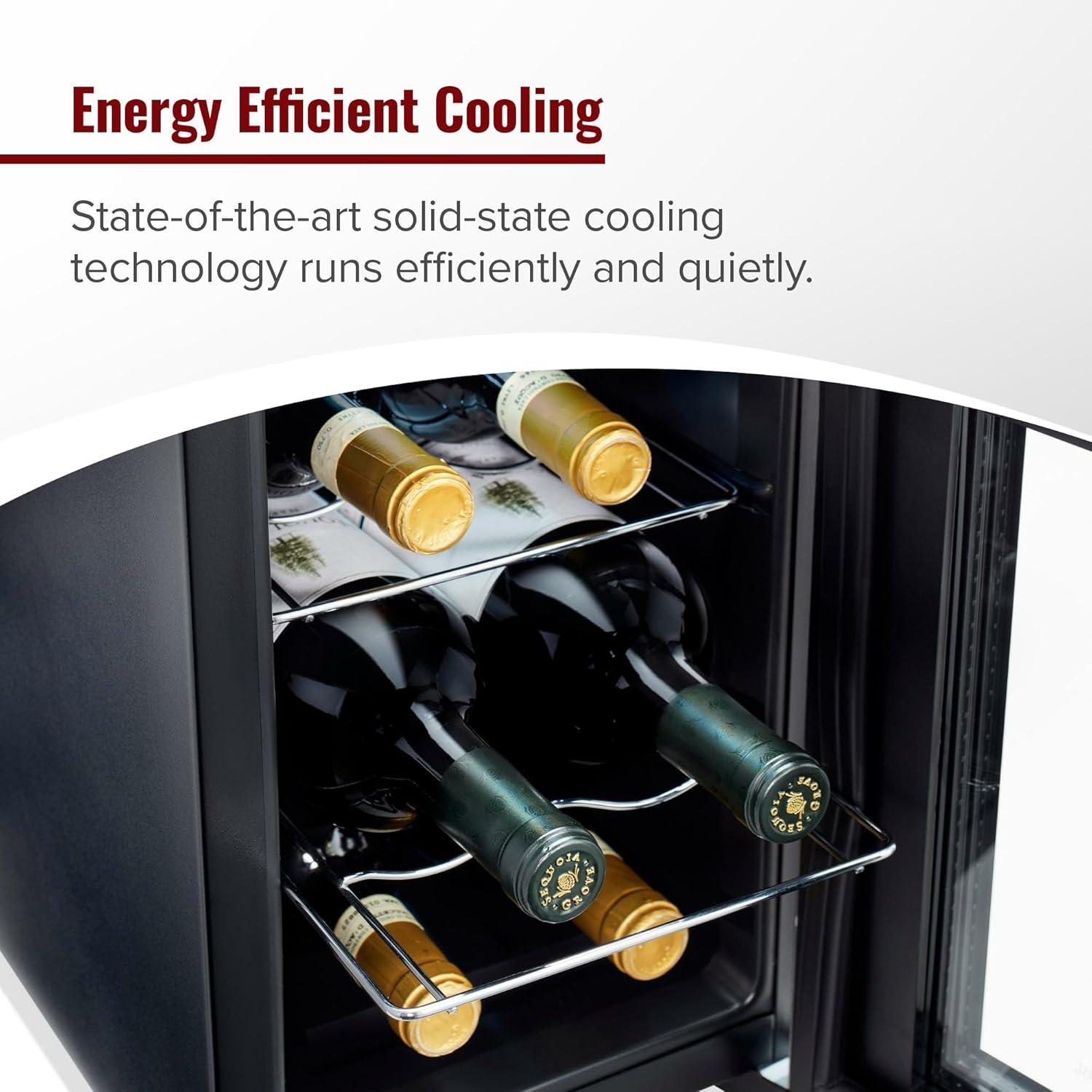 Sleek & Space-Saving Design: Compact at 9.75″W x 19.87″D x 14.87″H, this freestanding wine cooler is perfect for kitchens, bedrooms, bars, or offices. Its modern black and silver finish adds sophistication to any space