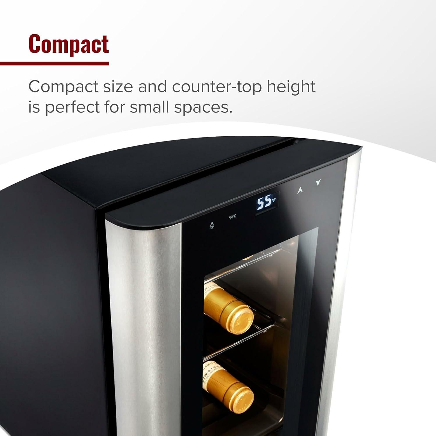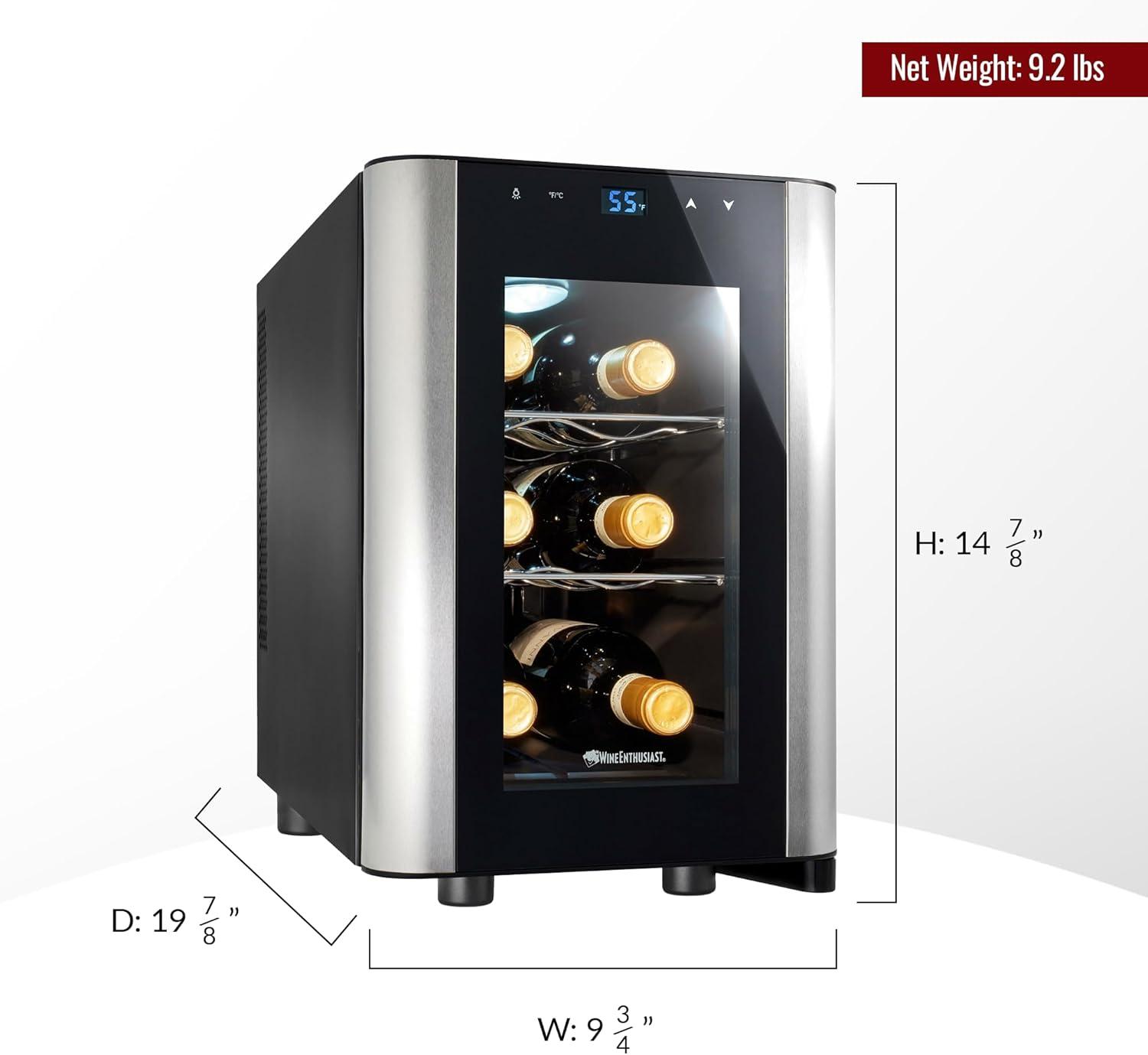Compact Mini Wine Fridge: The Wine Enthusiast 6-Bottle Wine Cooler stores & protects up to 6 Bordeaux bottles in a sleek, efficient design that fits virtually anywhere. Two sturdy, space-efficient metal racks help keep your collection organized and accessible