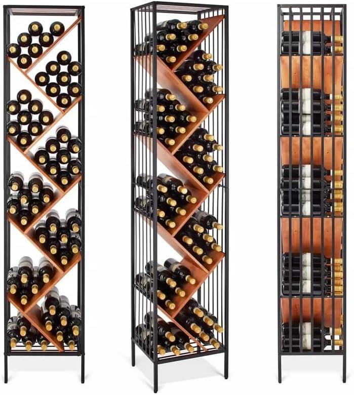Wine Enthusiast Anjou Modular Metal & Pine Wood 78-Bottle Wine Rack – Modern Minimalist Standing Organizer & Storage Display, Design for Solo & Multi-Unit Exhibit