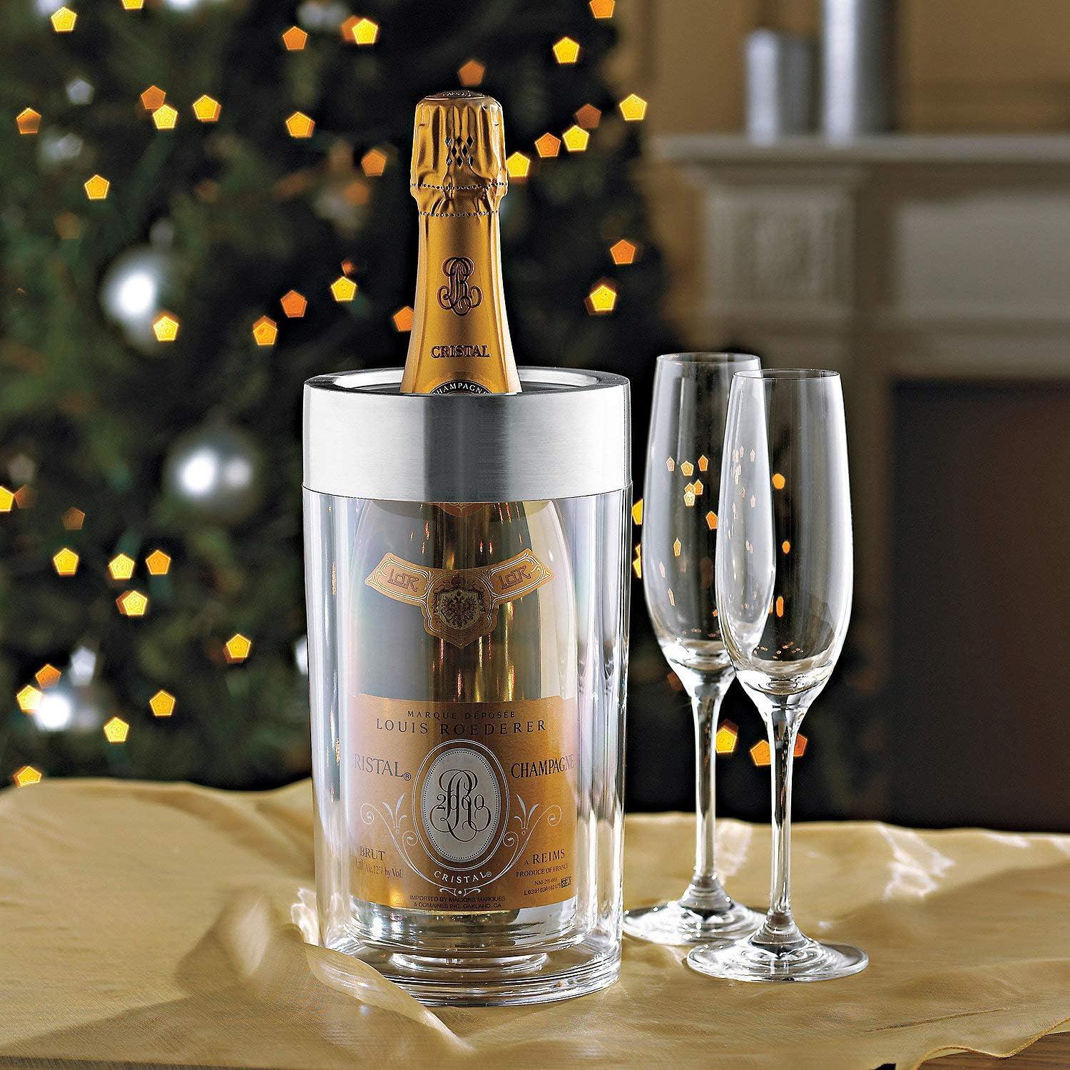 Wine Enthusiast Double Wall Iceless Wine Bottle Chiller – Premium Thermal Insulated Single Bottle Bucket for Tabletop Cooling(Clear)