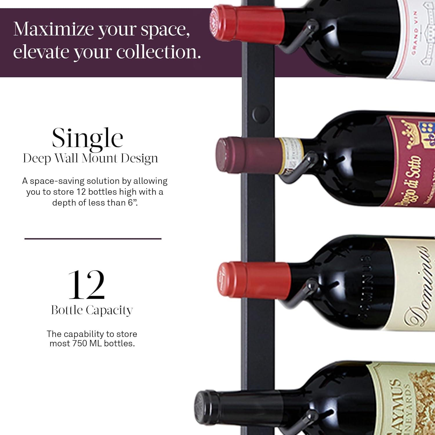 Wine Enthusiast N’FINITY 12 Bottle Wall Mounted Metal Wine Rack – Label Forward Wine Rack with Easy Installation – 4′ Tall, 1 Column Deep (Black)(4 ft. – 12 Bottles)