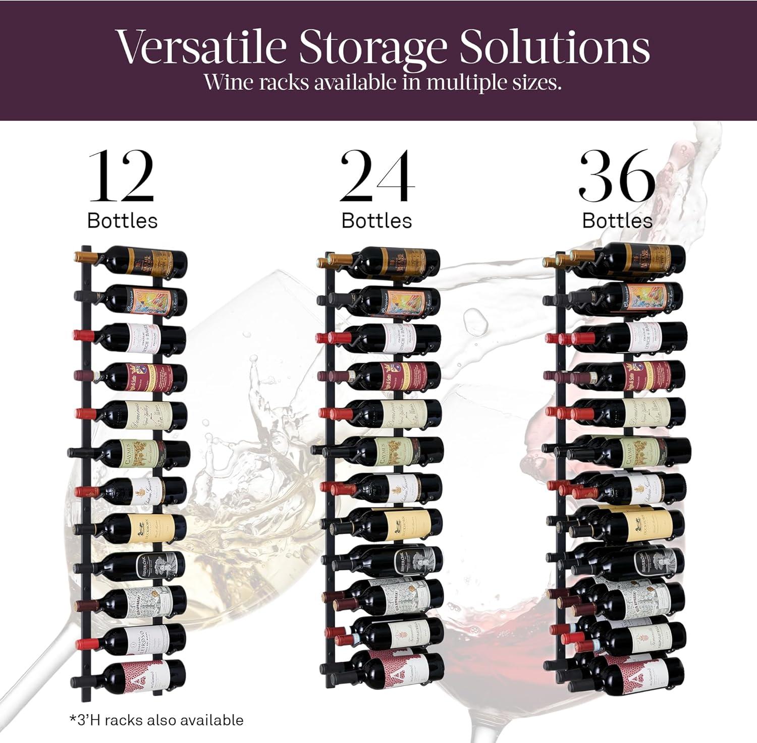 Wine Enthusiast N’FINITY 12 Bottle Wall Mounted Metal Wine Rack – Label Forward Wine Rack with Easy Installation – 4′ Tall, 1 Column Deep (Black)(4 ft. – 36 Bottles)