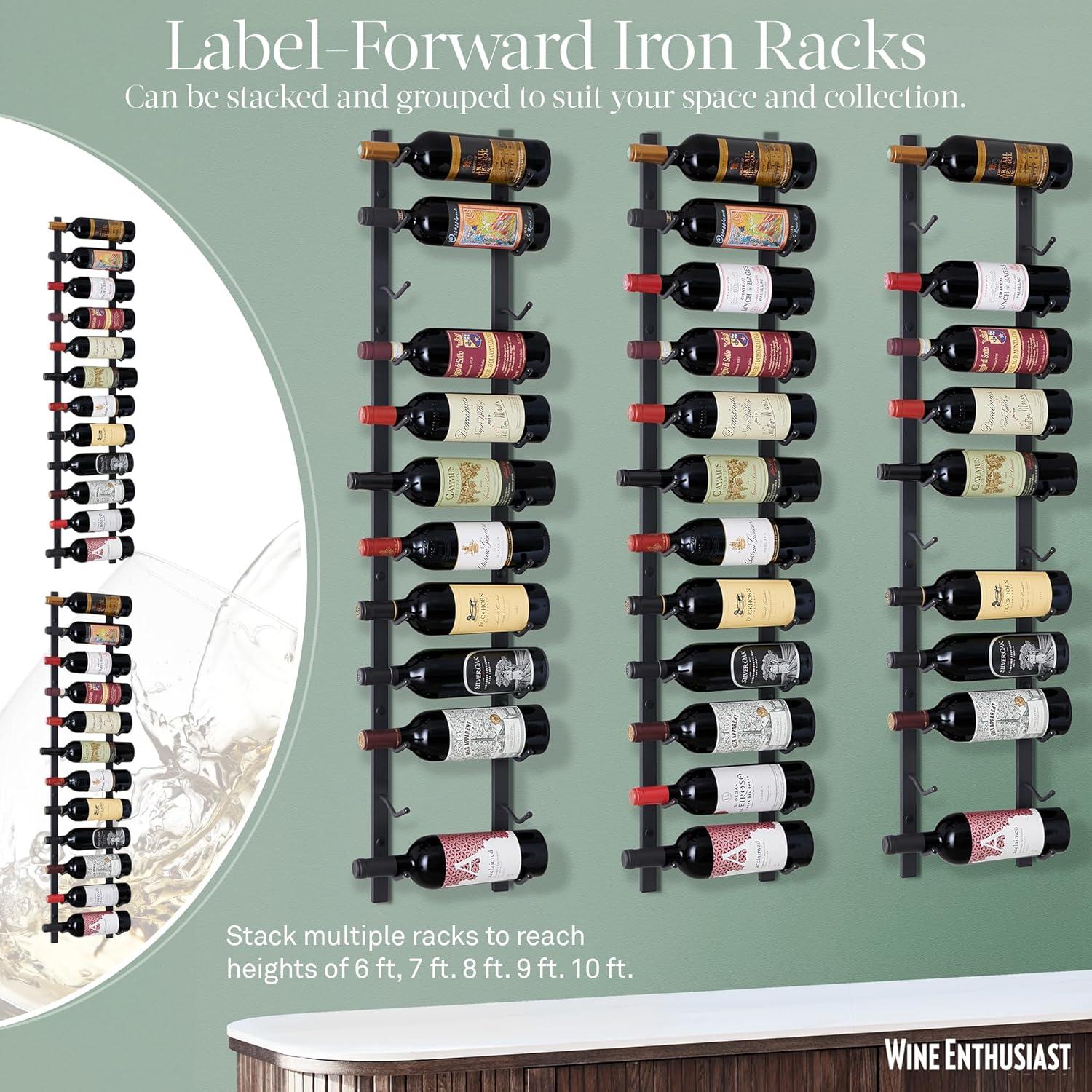 imageWine Enthusiast NFINITY 12 Bottle Wall Mounted Metal Wine Rack  Label Forward Wine Rack with Easy Installation  4 Tall 1 Column Deep Black4 ft  36 Bottles