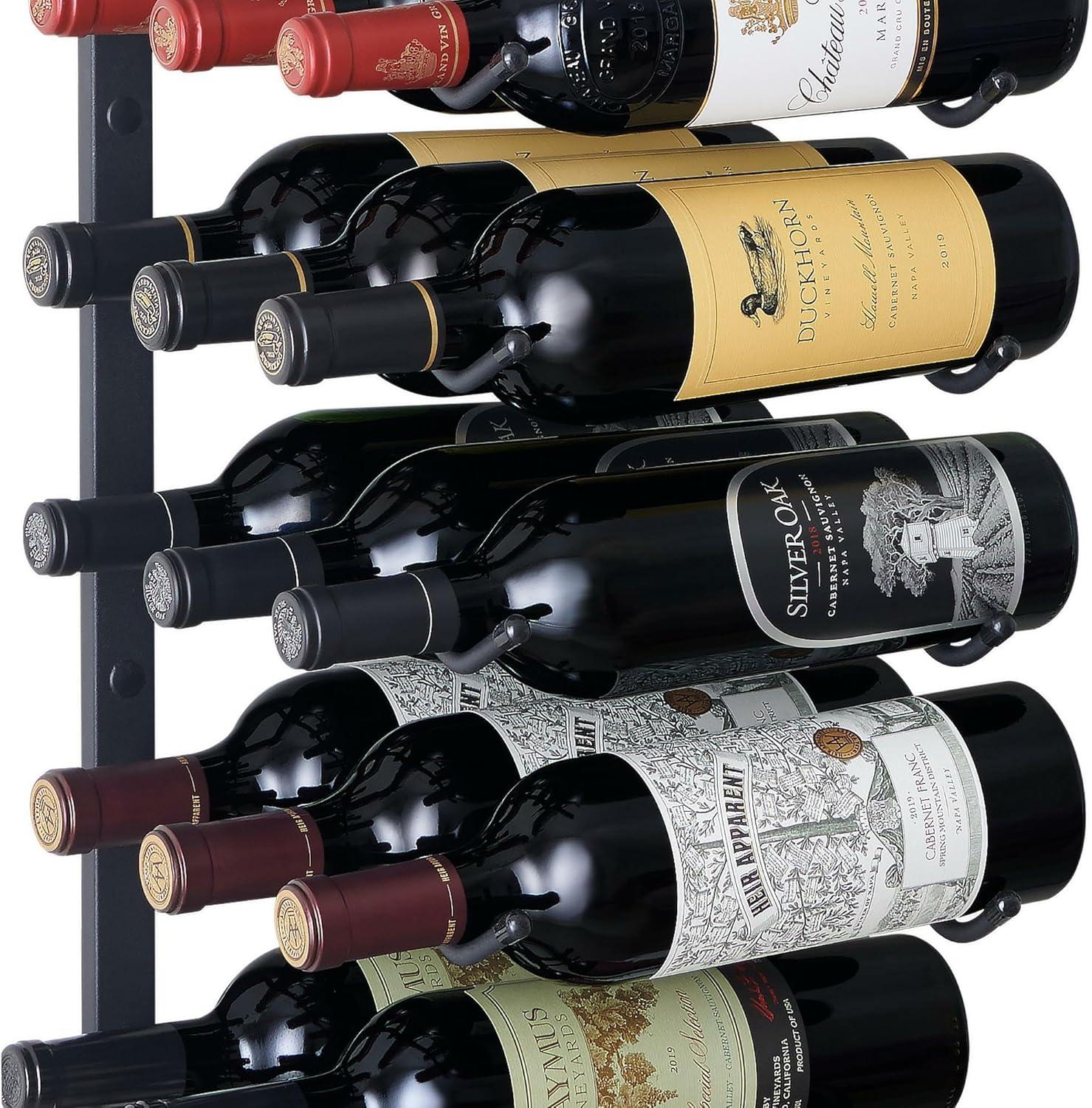 Wine Enthusiast N’FINITY 18 Bottle Wall Mounted Metal Wine Rack – Label Forward Wine Rack with Easy Installation – 3′ Tall, 2 Column Deep (Black)(Urban 8 Bottle)
