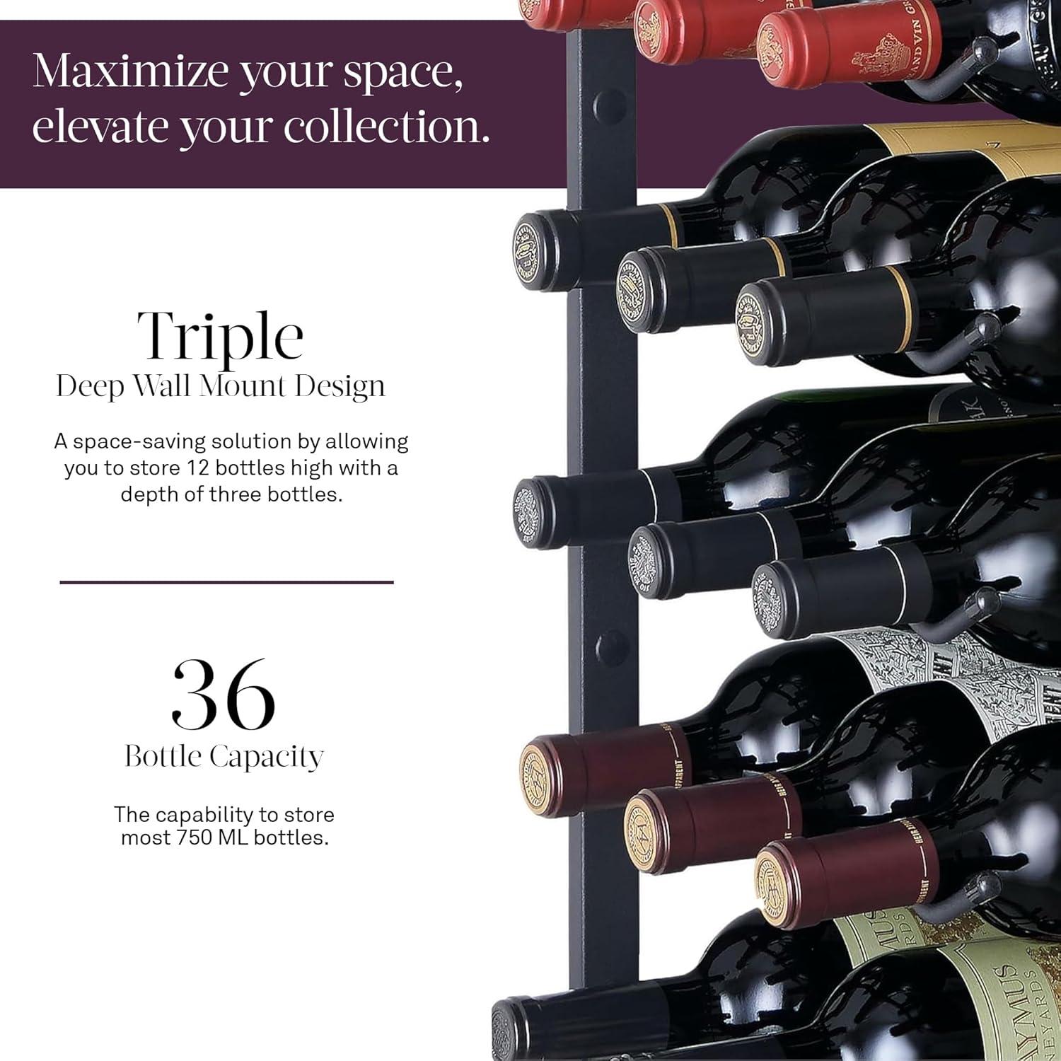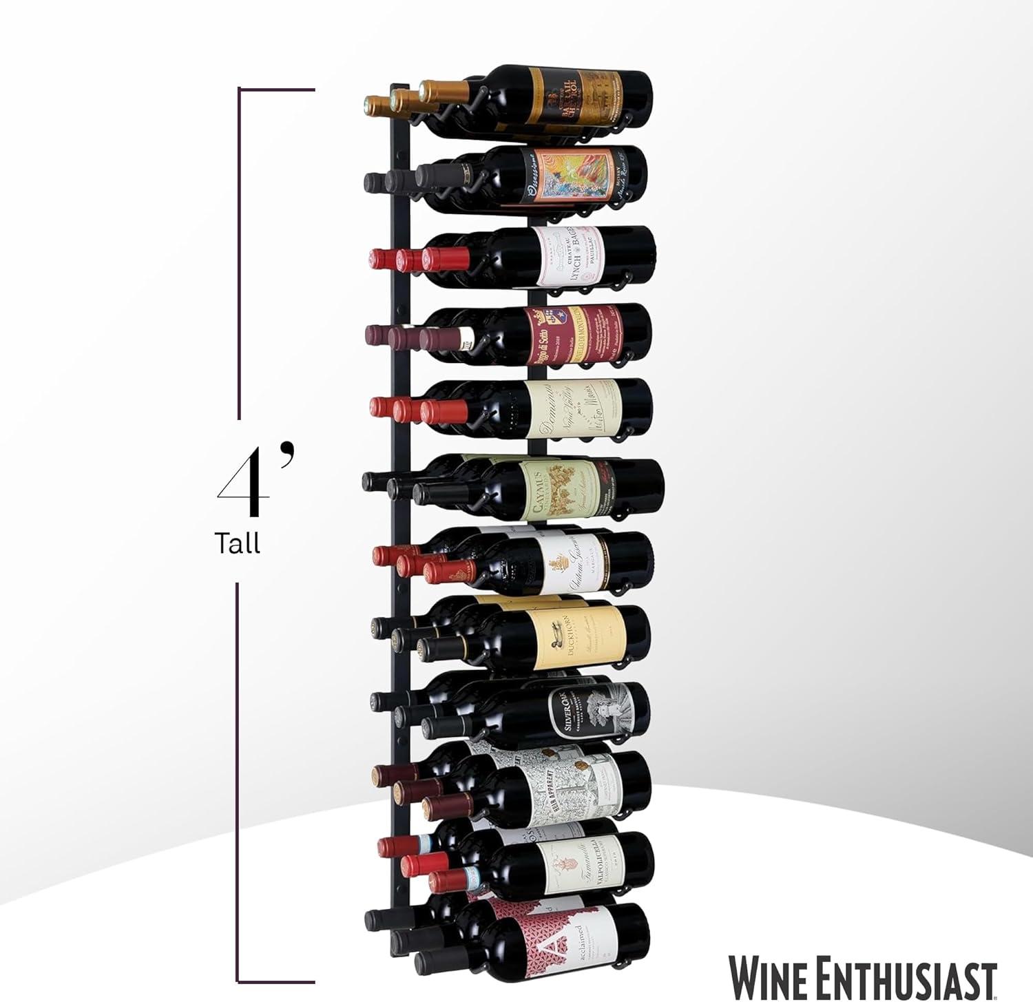 Wine Enthusiast N’FINITY 18 Bottle Wall Mounted Metal Wine Rack – Label Forward Wine Rack with Easy Installation – 3′ Tall, 2 Column Deep (Black)(4 ft. – 36 Bottles)
