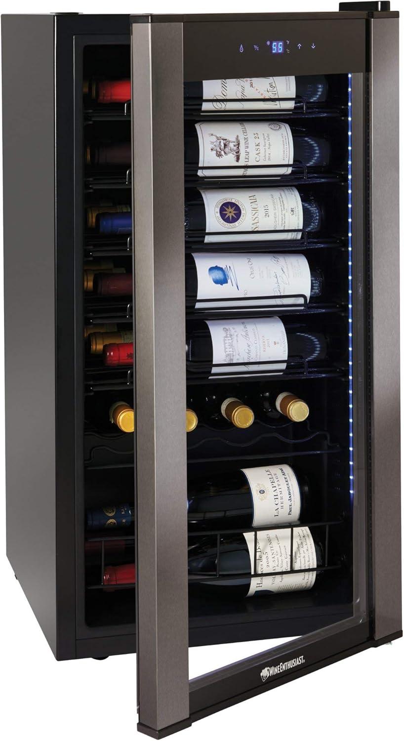 Protect Your Wine: The wine fridge, measuring 18.9” x 17” x 32.7” is equipped with a double pane glass door featuring UV protection. This feature shields your precious wines from harmful UV rays, preserving their flavors, aromas, and overall quality. The adjustable thermostat can be set 39-65° F
