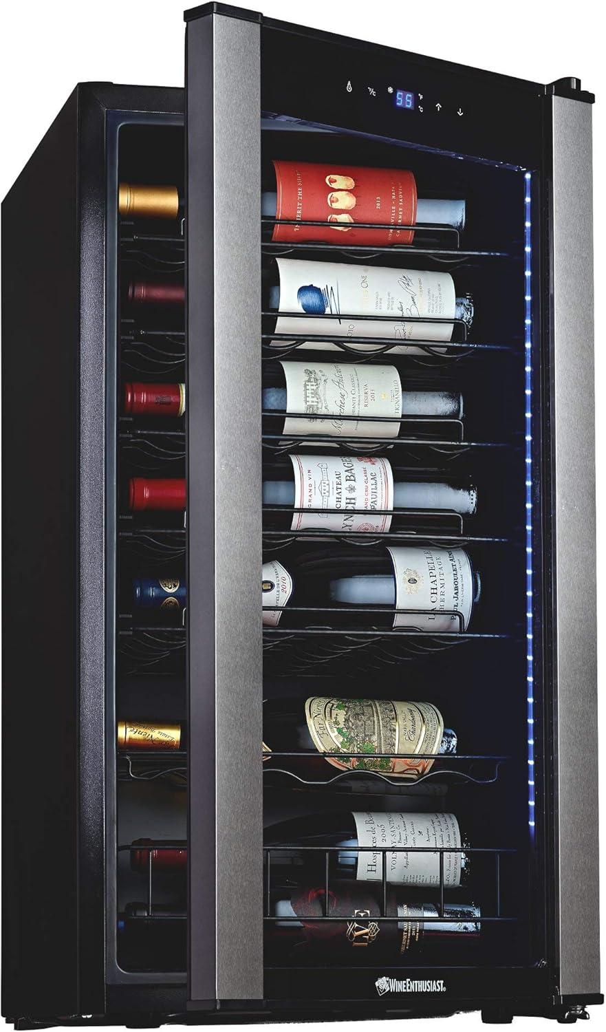 Generous 28-Bottle Capacity: Our wine fridge offers ample storage space, accommodating up to 28 standard Bordeaux sized bottles of your favorite wines. Whether you're a casual wine enthusiast or a connoisseur, this fridge ensures you can keep a diverse selection of wines at the perfect temperature