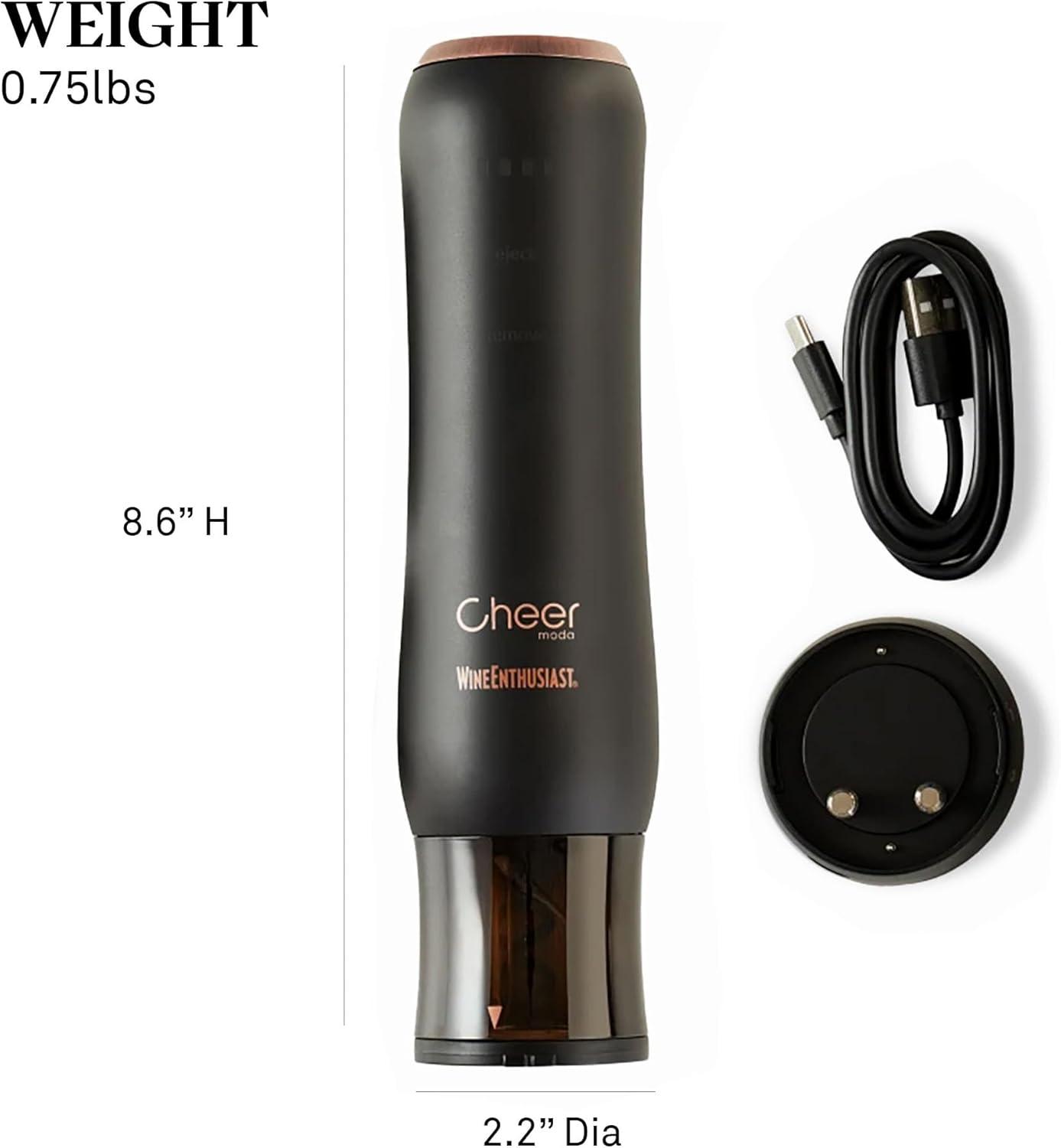Wine Enthusiast x Cheer Moda Electric Sparkling Wine Opener – Automatic Champagne Bottle Opener with Cork Release & Stopper – Stainless Steel Electric Wine Tool – Battery Powered – U.S. Exclusive(Wine)